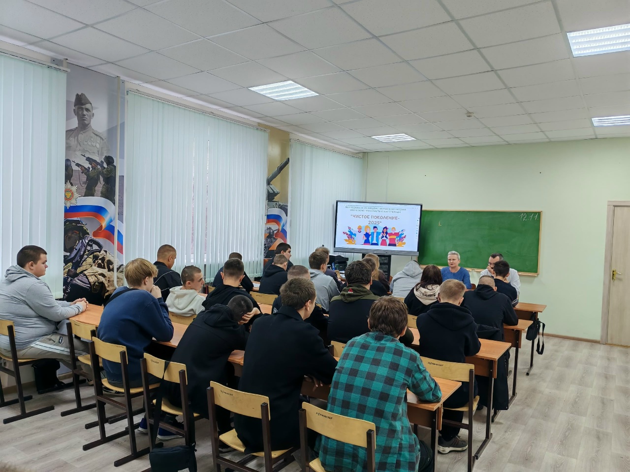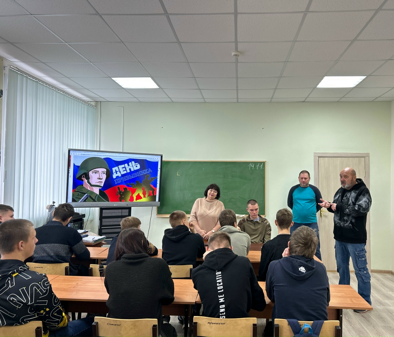 14.11.2025 09:05:00День призывника. В рамках празднования Дня призывника, наши ребята получили уникальную возможность пообщаться с опытными специалистами в области военной службы. На встрече присутствовали Ольга Ивановна Божко, помощник начальника отделения подготовки и призыва граждан на военную службу, и Андрей Леонидович Соловьёв, исполняющий обязанности начальника отделения, а так же наш выпускник, участник СВО.